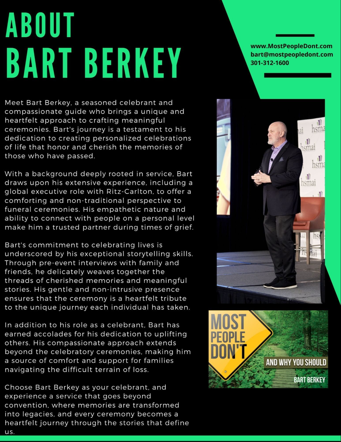 Choosing Bart Berkey as your celebrant means choosing a dedicated partner who cares deeply about capturing the spirit of your loved one. His commitment to creating personalized, non-traditional, and heartwarming celebrations sets him apart in providing a service that goes beyond the ordinary.